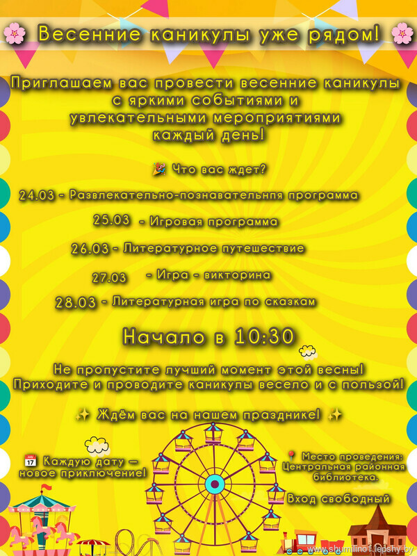 Весенние каникулы — время новых открытий и ярких впечатлений! В библиотеках проходят особенные мероприятия — веселые игры, увлекательные чтения, творческие мастер-классы и атмосферу радости для всей семьи.